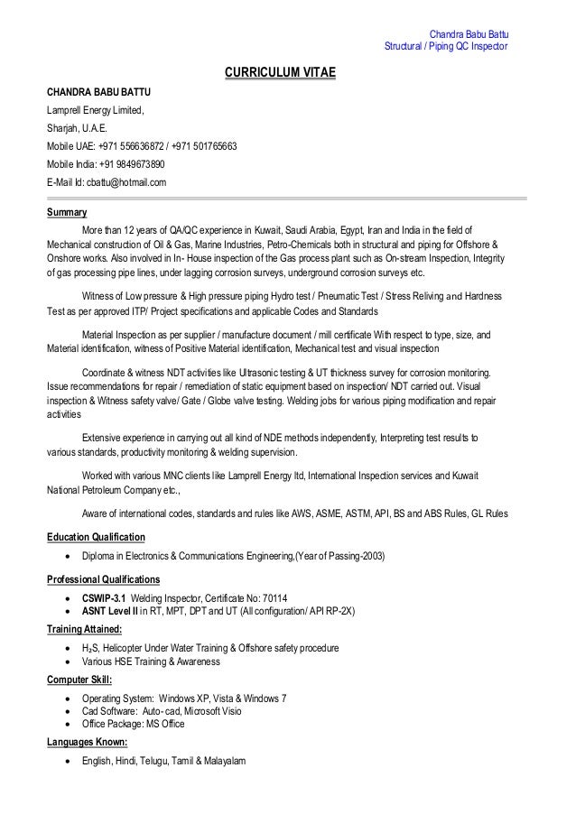 Job Description: Quality Control / Inspector Principal Duties ...